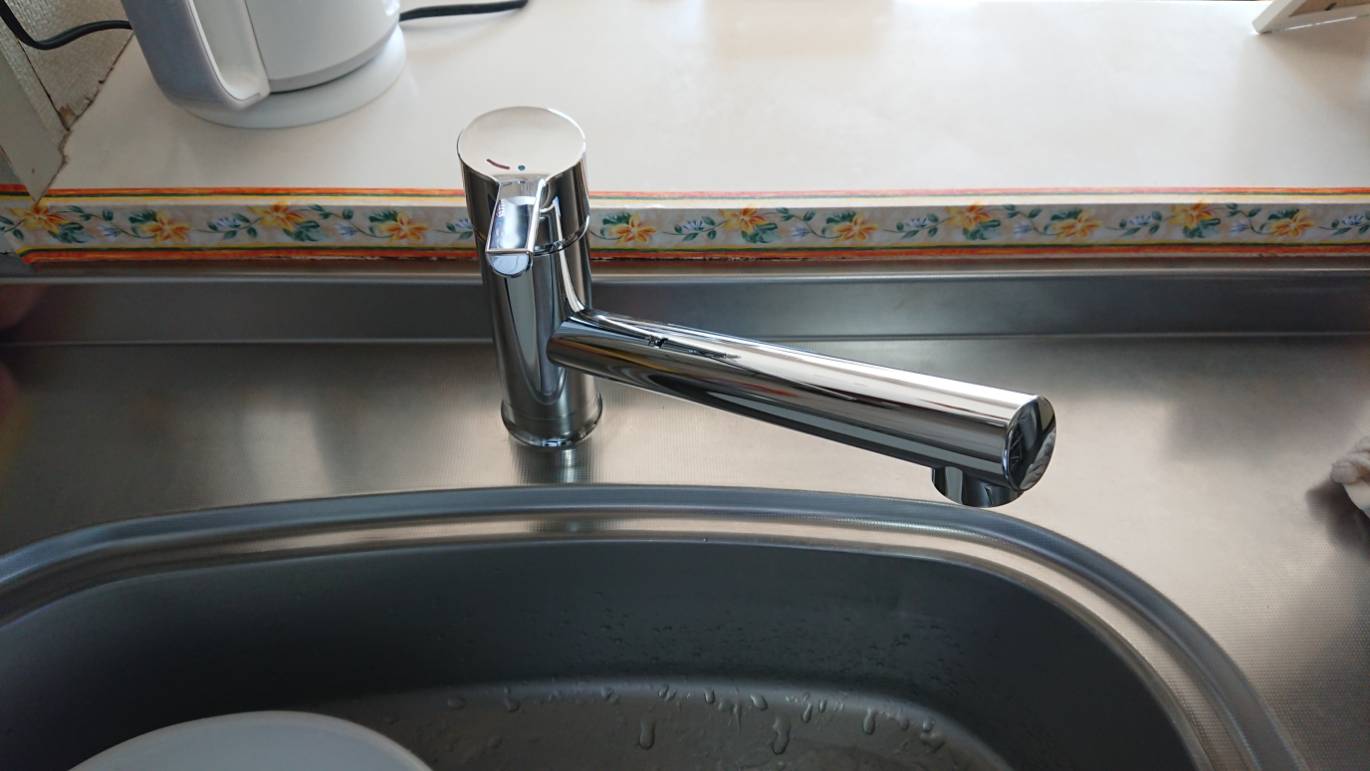 以前ご使用されていた水栓と変わって、今回設置したのはコンパクトな水栓です。