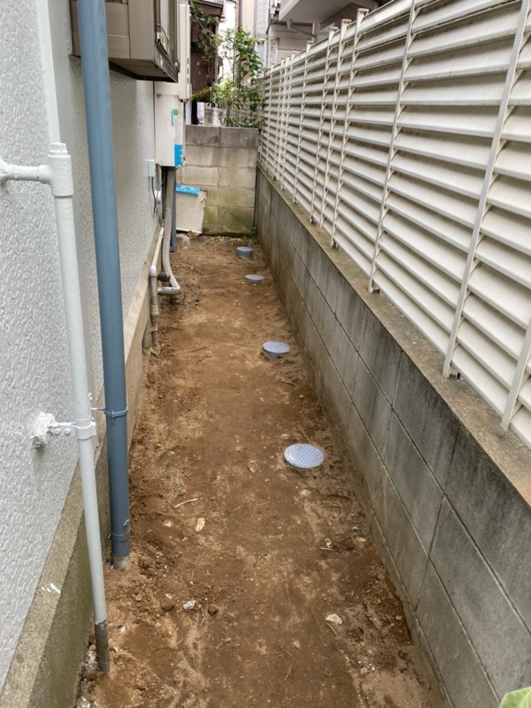 排水が流れることを確認してから地面を埋め戻していきます。